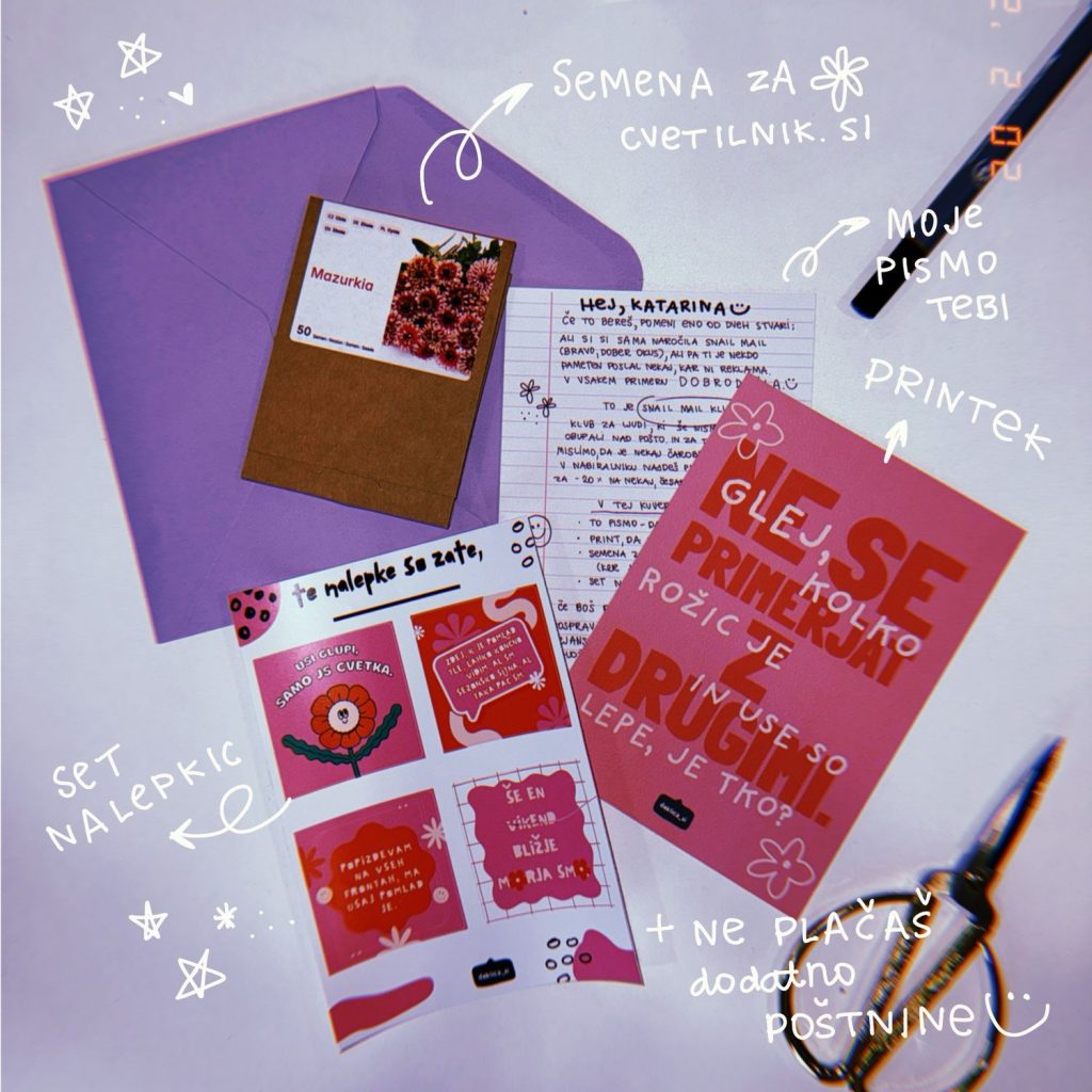 Če bi mi nekdo eno leto nazaj rekel, da bom imela klub, kjer si ljudje plačujejo naročnino za to, da dobijo pismo po pošti, bi se mu verjetno smejala. Ne zato, ker ideja ne bi bila lepa, ampak ker se sliši malo nerealno. V času, ko imamo vse na telefonih, ko si še rojstnodnevne čestitke pošiljamo prek aplikacij in ko večina nabiralnikov služi predvsem kot zbiralnik reklam, se zdi ideja o fizični pošti skoraj malo nostalgična.